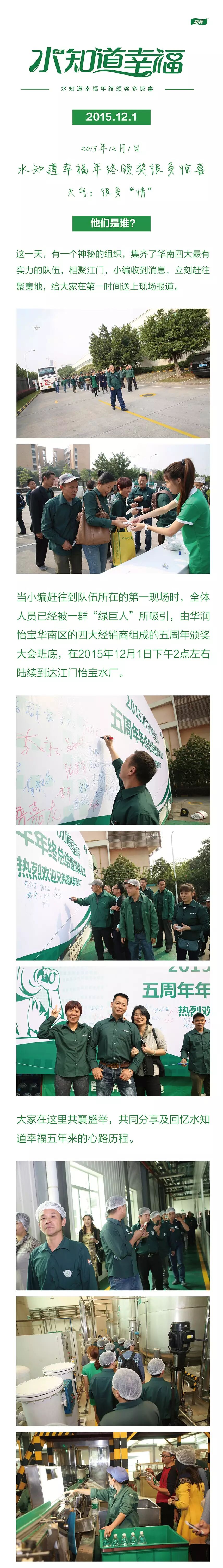 “水知道幸福”年终活动圆满结束,特此小编送上温馨大合照!再许一个大心愿,约定怡宝送水员的队伍越来越强大!也祝愿每一位怡宝送水员健康幸福快乐!